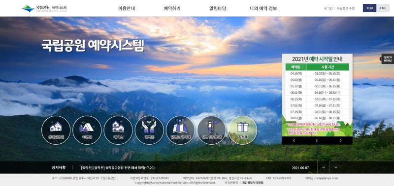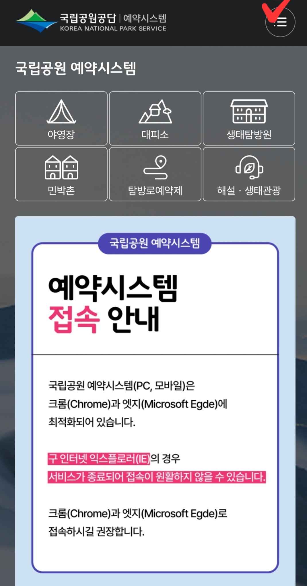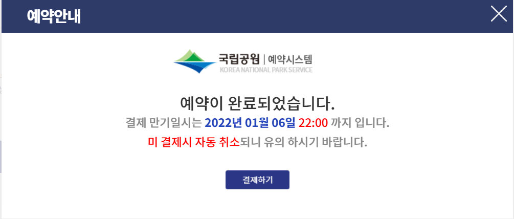 국립공원 예약통합시스템은 아래 링크를 통해서 이동할 수 있습니다.