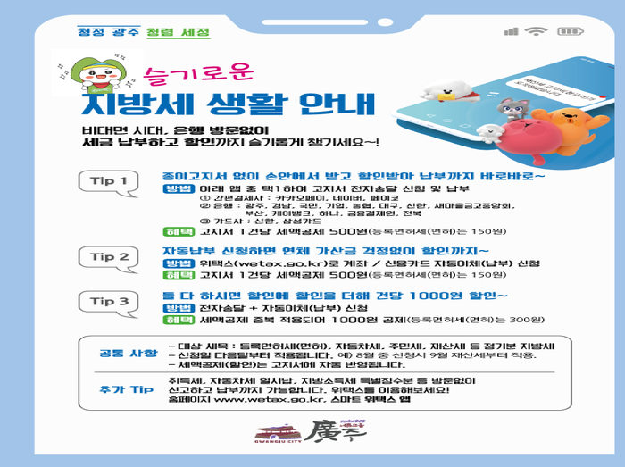 위택스 홈페이지를 통해 최신 세금 정보와 납부 안내를 받으세요. 문의 사항이 있으면, 홈페이지 내 고객센터를 통해 도움을 받을 수 있습니다.