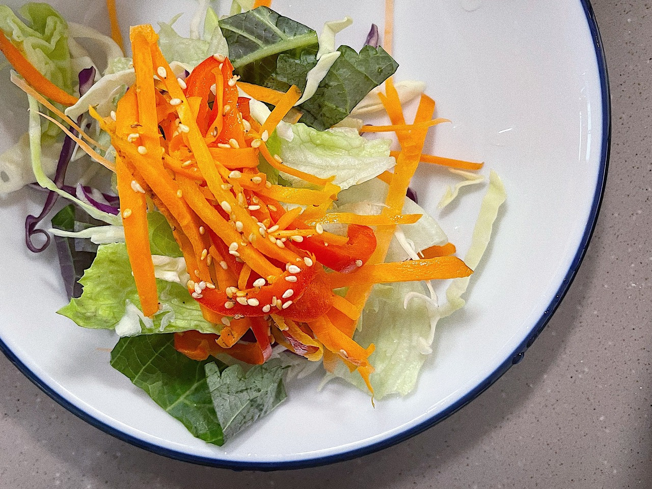 - 채썬 당근을 큰 볼에 담고, 준비한 드레싱을 부어주세요.