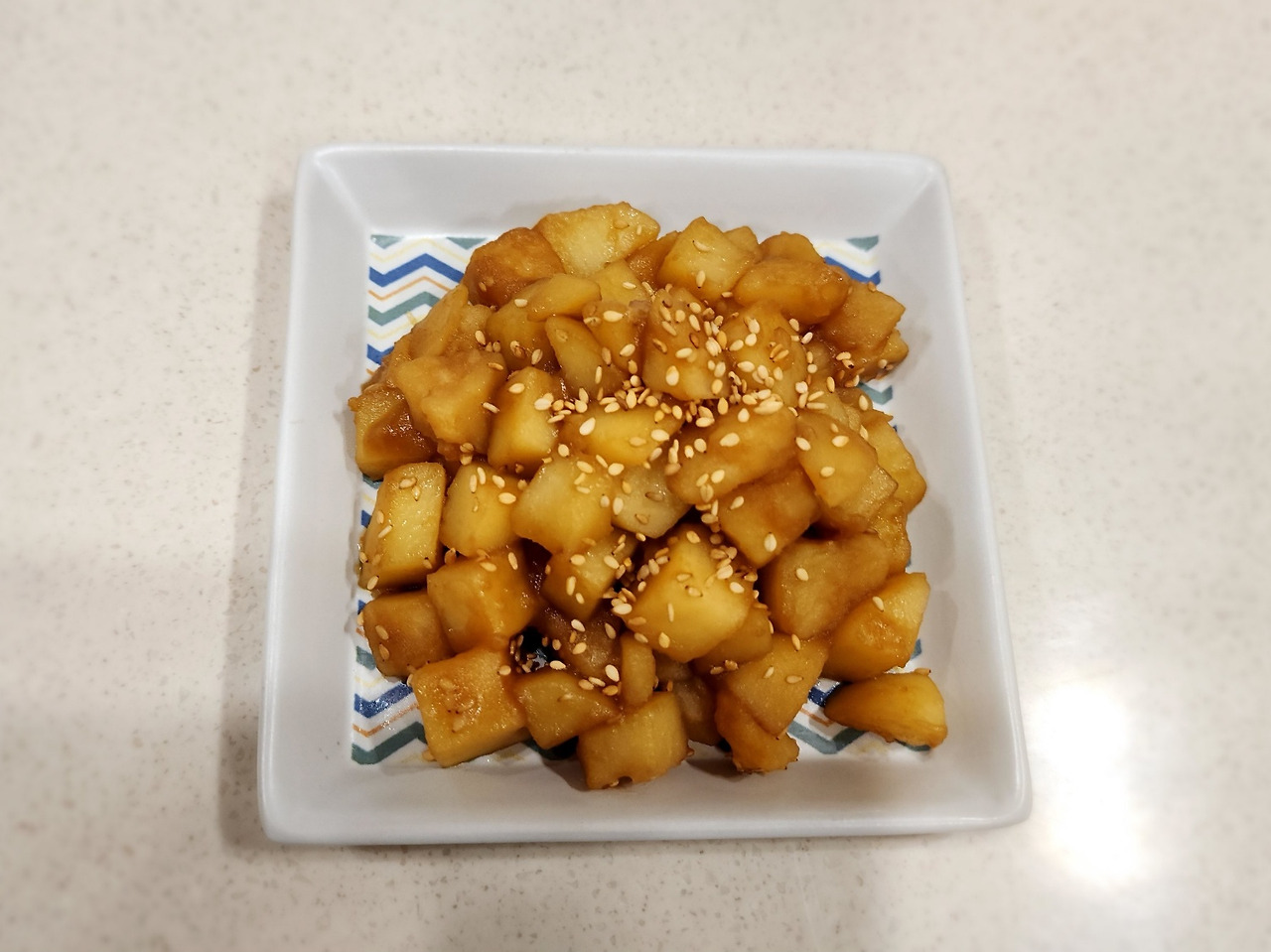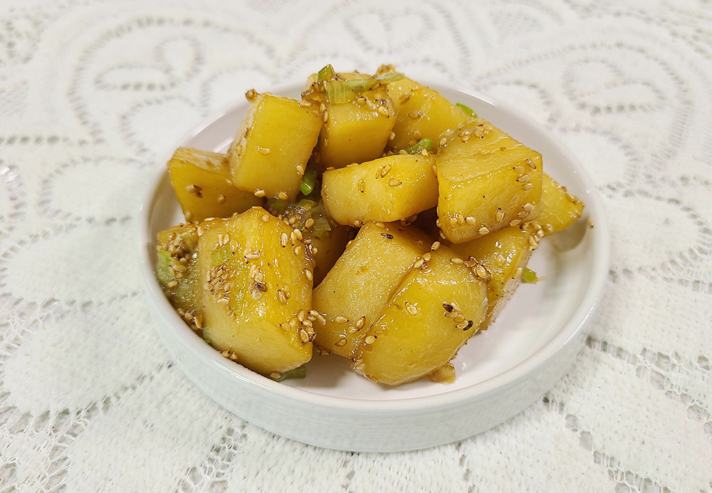 청양고추를 썰어 넣으면 매콤한 감자조림도 가능합니다. 매운맛을 좋아하는 분들이라면 적극 추천합니다. 통깨를 마지막에 솔솔 뿌려주면 고소함까지 극대화할 수 있습니다.
