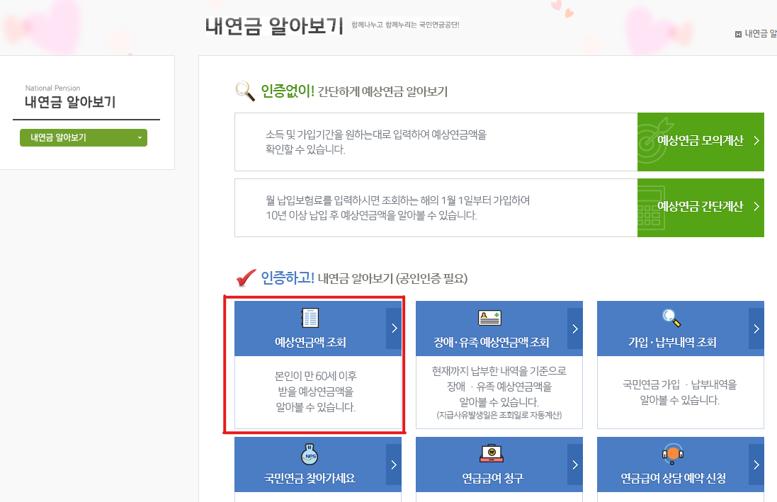 자주찾는 민원서비스 > 내연금 알아보기 로 들어갑니다.