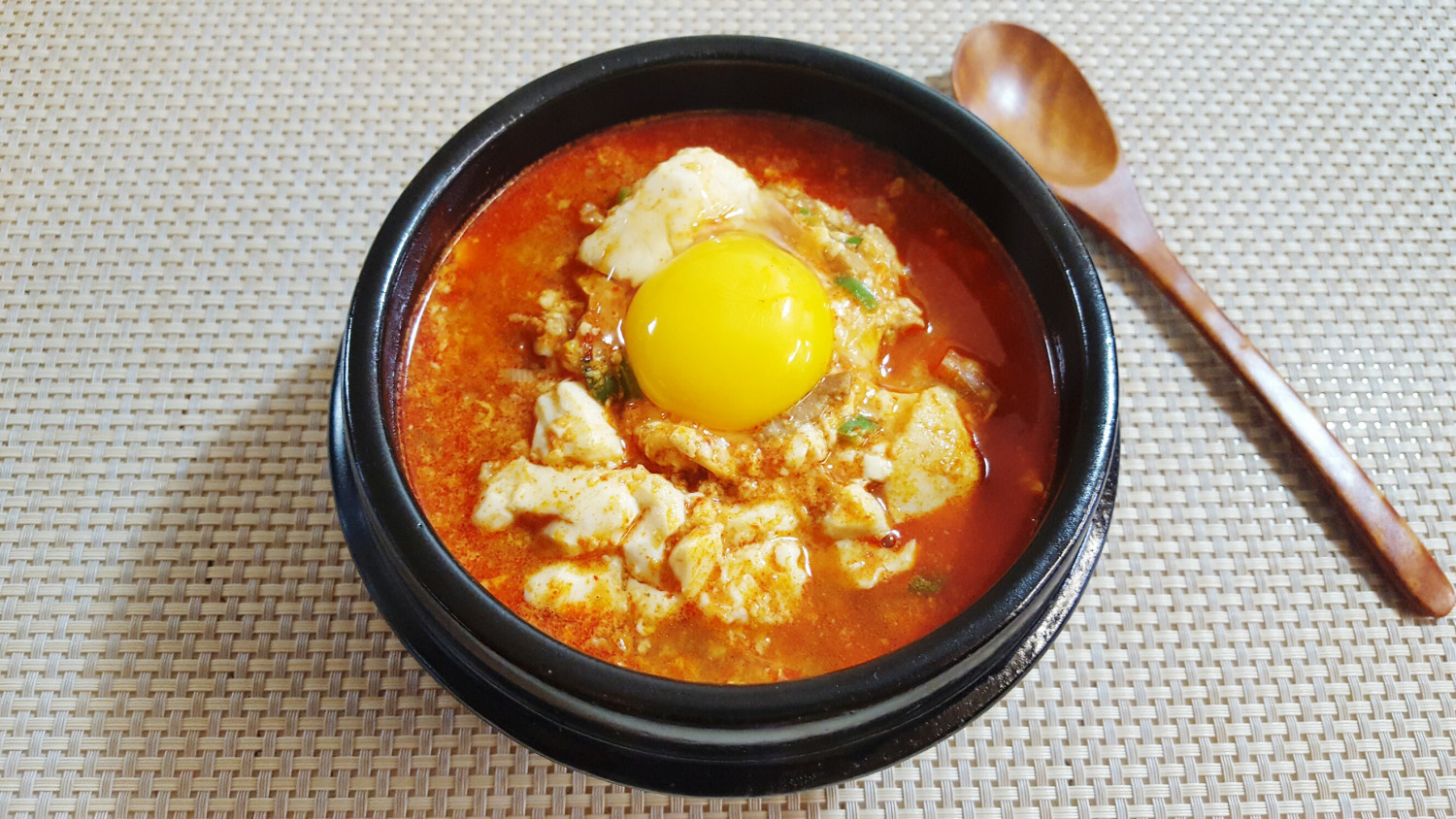 마지막으로, 순두부는 제일 마지막 단계에서 조심스럽게 넣어 부서지지 않도록 가열하면서 천천히 섞어줍니다. 마지막에 달걀을 풀어 넣어주면 부드러운 식감을 느낄 수 있습니다.
