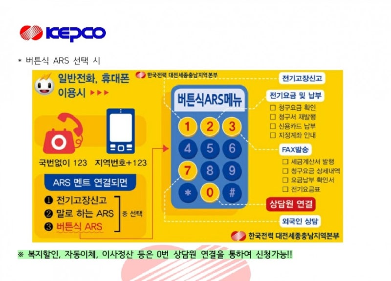 평소 긴급한 상황에 대비해 한전 고객센터 전화번호를 기억해 두는 것이 좋습니다.