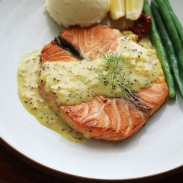 기호에 따라서는 크림이나 머스타드 소스를 곁들여 더욱 풍성한 맛을 연출할 수 있습니다. 그러나 소스의 맛이 지나치게 강해지지 않도록 양을 조절하며, 연어 본연의 맛을 강조해야 합니다.