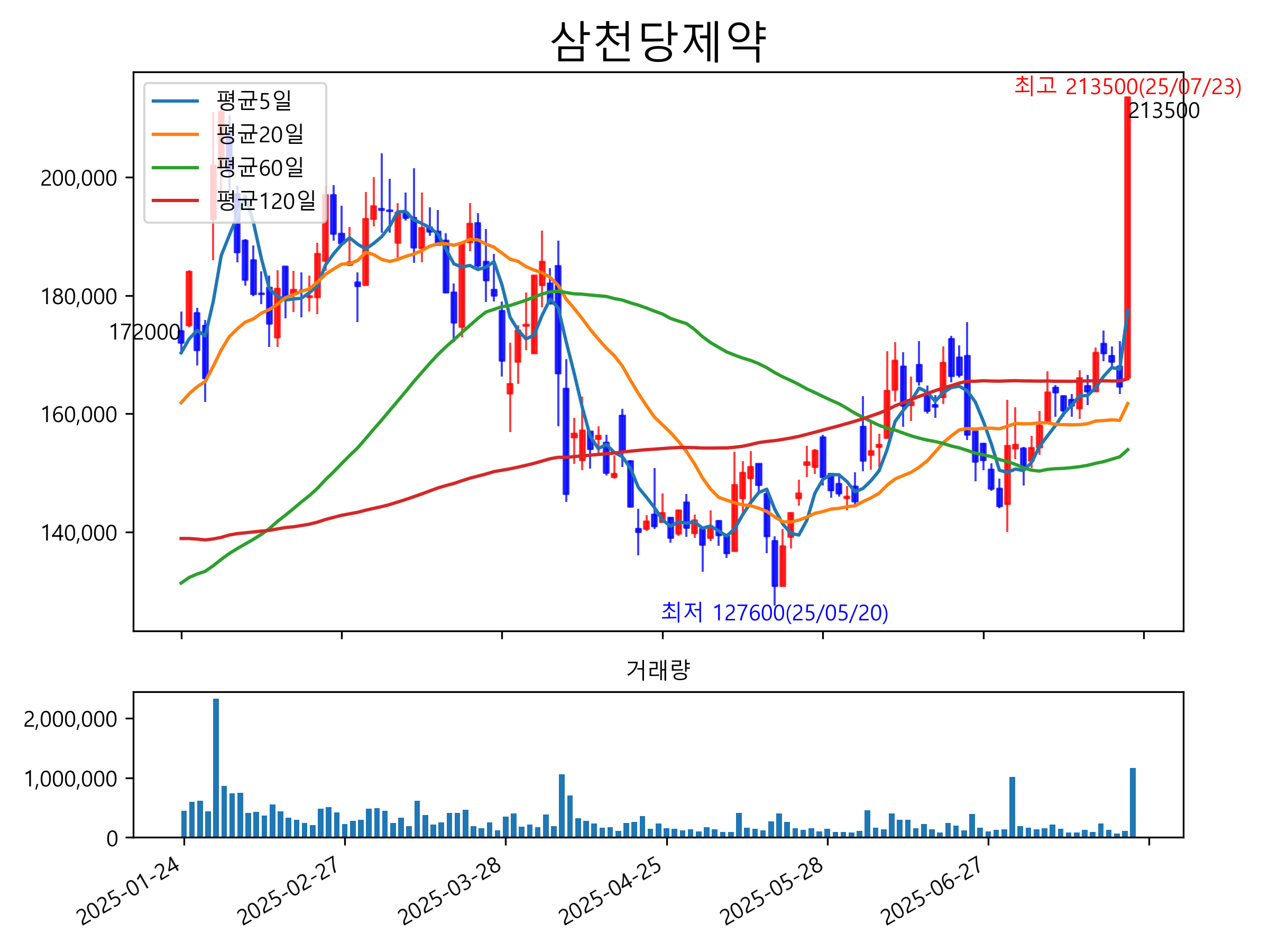 최근 6개월간 캔들차트 및 이동평균선입니다.